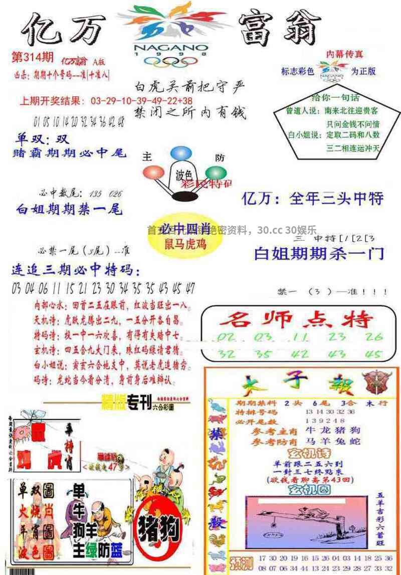 | 314期:两波中特【红波蓝波】开:羊23中 |